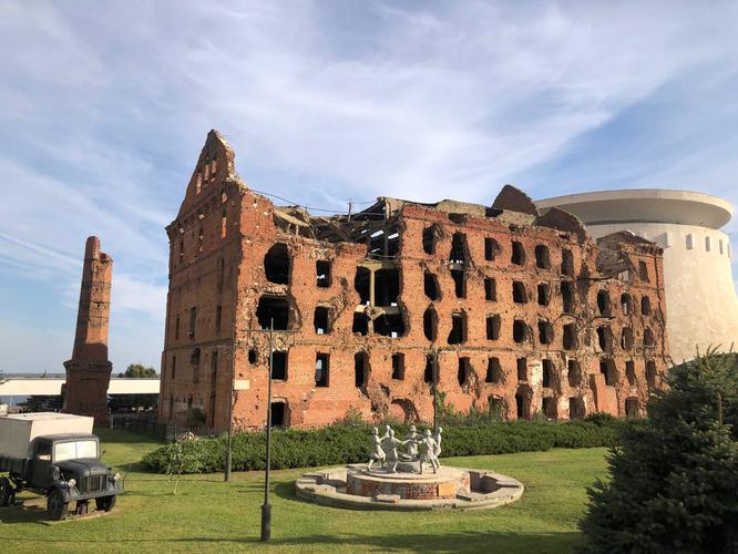 Здесь же рядом разрушенное здание мельницы Гергардта - типовое дореволюционное строение, ставшее символом жестокости уличных боев в Сталинградской битве. Мельница проработала до сентября 1942 года, когда в неё попали фугасные бомбы, что вызвало пожар и полную остановку работ.